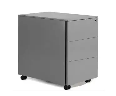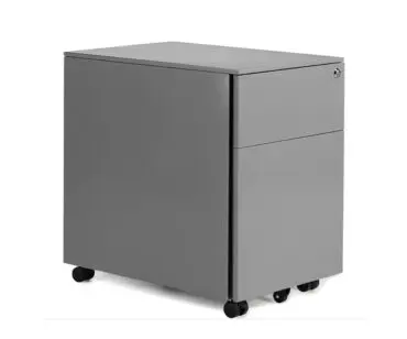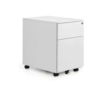 Como opción comprar una cajonera con ruedas de las siguientes medidas (cm) largo 40, fondo 54 y alto 58. Disponible en color blanco o gris plata. Si se va a situar bajo la mesa recomendamos una medida mínima de la mesa de 140×80 cm.