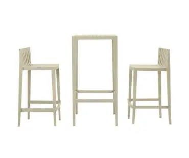 Mesa Spritz de Vondom, diseño Archirivolto Design. Fabricado en polipropileno por inyección y reforzado con fibra de vidrio. Apilable. Disponible en varios colores. Apto para uso interior y exterior. Las cercas de madera blancas que bordean la playa, las pequeñas tiras que se suceden, en su geometría perfecta… esa es la imagen que inspiró la colección Spritz, que se compone de los detalles robados de esta idea. Silla, sillón, taburete y mesa alta; perfecto para cada necesidad, la colección Spritz se adapta bien a cualquier contexto. Contract y hogar. No es una coincidencia que Spritz, la colección creada por Archirivolto para Vondom, encarne en el nombre de la idea de frescura y pureza de formas. Es una mezcla entre la linealidad de estilo nórdico y la calidez mediterránea, que crean un diálogo entre interior y exterior.