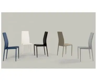 Silla Renee Ingenia de Bontempi, silla de elegante diseño de muy alta comodidad, su estructura es de metal y puede ser tapizada y revestida en eco Leather, ecoNabuk o tela Penny.