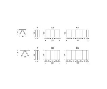 Base en acero barnizado gofrado a polvo epoxídico o barnizado a polvo epoxídico y revestido de acero inox escarchado. Sobre y extensiónes en aglomerado impermeable postformado laminado. Acabados como muestrario. Rieles deslizantes in aluminio.