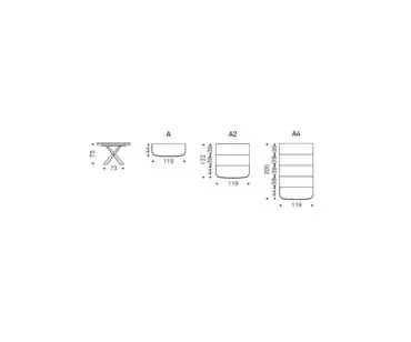 Base en acero barnizado a polvo epoxídico. Sobre en MDF barnizado. Parte insertada en cerámica Marmi grosor 6 mm. La cerámica en acabado Portoro mate o brillo es en grosor 5 mm. Extensiónes en aglomerado impermeable postformado laminado. Acabados como muestrario.