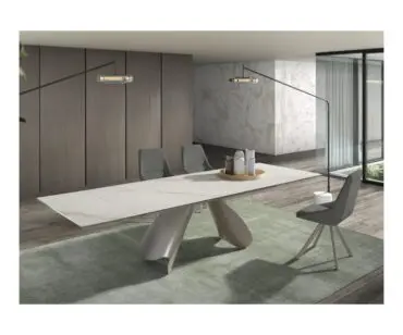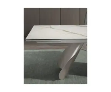 Mesa de comedor fija y extensible Butterfly de Ramiro Tarazona. Mesa de comedor extensible en varios acabados de tapa cristal optico, natural brillo o mate y también en madera MDF 19mm chapado con chapas naturales entabililladas, puede variar el tono dentro de una misma pieza, cerámico o dekton. Original y elegante diseño disponible en distintas medidas y gran variedad de acabados para sus patas de acero lacadas en diferentes colores.