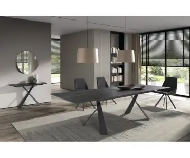 Precio desde indicado para mesa en medida fija 165×100 acabado de tapa en cristal natural (consultar precio en otros acabados y disponibilidad según medida).