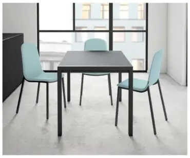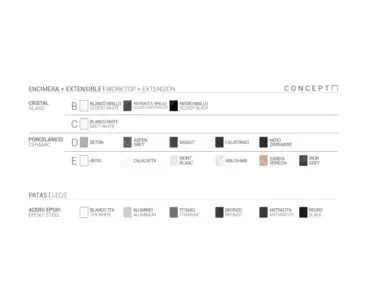 Mesa cocina Concept Cancio. Diseño contemporáneo de líneas muy equilibradas para los amueblamientos más exigentes. Mesa fija o extensible para cocina o salón con un mecanismo de apertura mediante el desplazamiento de las patas y dos extensibles de 34cm de apertura automática siempre a juego con la encimera. Patas en acero lacado epoxy en diferentes colores según muestrario. Encimera en cristal templado, porcelánico con base en vidrio. Embellecedor frontal a juego con la encimera. Disponible en medidas 110×70, 120×80.