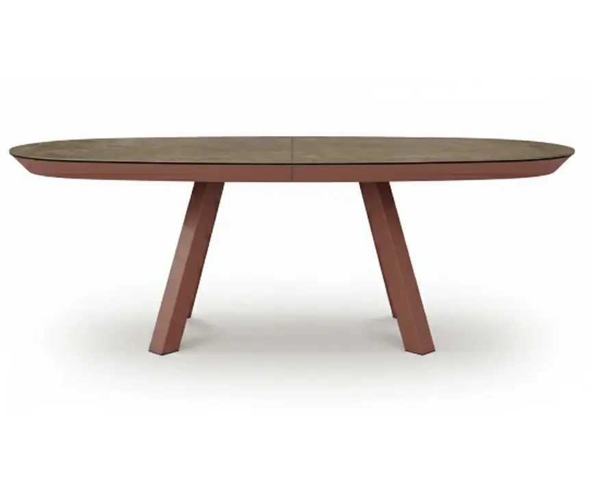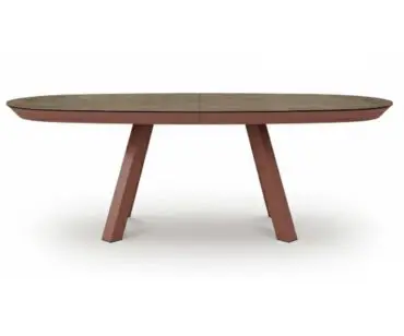 También tiene dos versiones más pudiendo ser en rectángular extensible con medidas de 180 (250)x100/ 200 (280)x100/ 220 (300)x100/ 220 (300)x110/ 240 (320)x110 y ahora como novedad podrá disfrutar de la versión ovalada y extensible, donde la apertura sigue siendo por desplazamiento de patas las cuales llevan ruedas de goma para evitar el ruido y el rayado. Su extensible lleva un tirador integrado que facilita una apertura semiautomática del extensible. Con la extensión abierta el dibujo de la tapa no continuará.