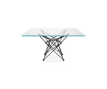 Mesa de comedor Gordon de Cattelan. Espectacular pie, como siempre hecho a mano, disponible en distintos acabados barnizado transparente, blanco, gofrado titanio, negro o grafito. Gordon nace para ofrecer una linea un poco mas económica dentro de la marca Cattelan. Gran cantidad de medidas disponibles, tapa cristal transparente o extra claro o transparente extraclaro con bordes biselados inversos (versión rectangular) o biselados (versión redonda). Las medidas de 182×90 y 200×106 tienen un grosor de 12mm el resto de medidas tienen un grosor de 15 mm.