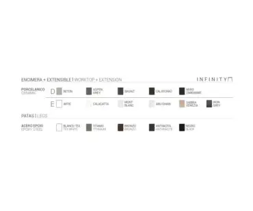 Mesa Infinity, una mesa multiuso de diseño para cocina o salón. Original diseño con encimera que evita esquinas vivas y patas de acero de 12mm de grosor que aportan un toque de distinción y modernidad.