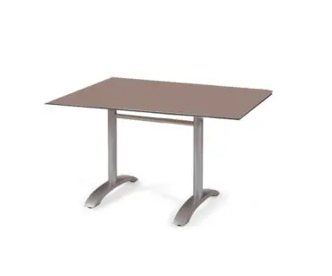 Mesa 25-Oslo realizada en aluminio, disponible en acabado gris plata o grafito. Además las patas tienen niveladores para asegurar la estabilidad