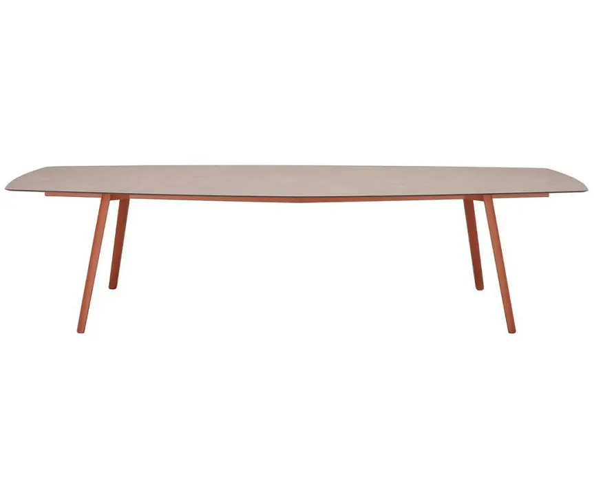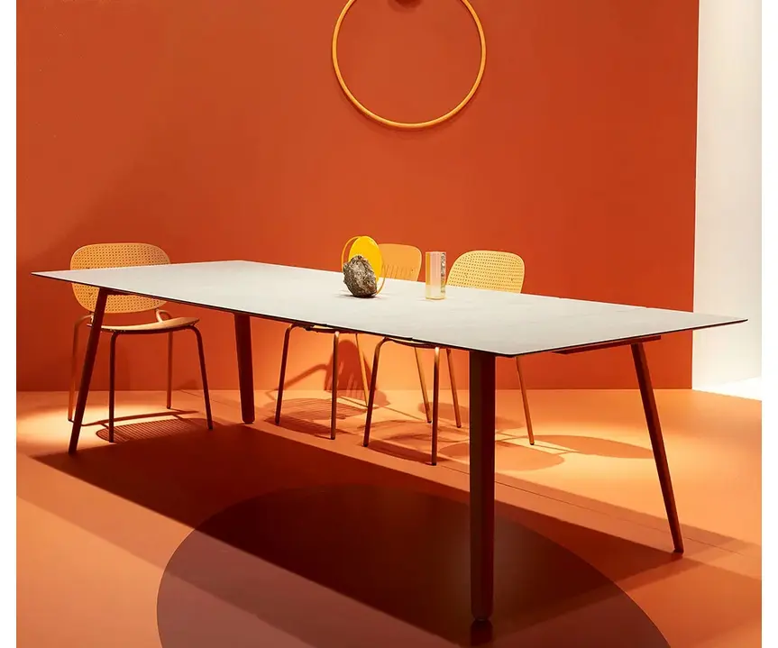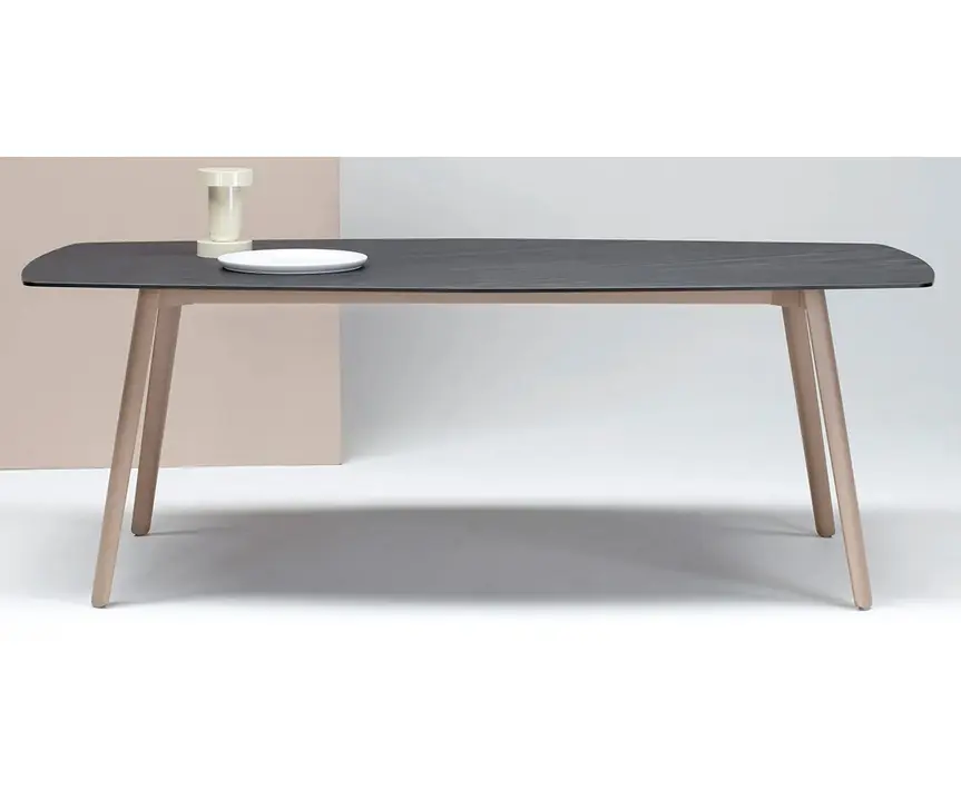 Squid nació de la necesidad de crear una mesa versátil, adaptable a diferentes entornos y disponible en una variedad de formas y tamaños. Una mesa que admite tableros de HPL o mármol, disponible en versiones rectangulares o hexagonales. El eje central del diseño es la pata de aluminio fundido a presión, cuya sección transversal única recuerda la forma de un hueso de sepia.
