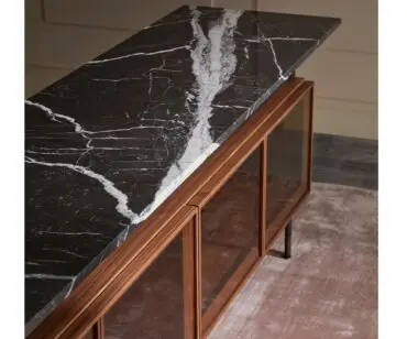 La colección de aparadores Chicago, diseñada por el estudio Norm Architects, es un homenaje a la arquitectura moderna y a las técnicas de construcción representativas de este periodo. Un concepto que se traduce en formas racionales, ligeras y flotantes que recuerdan a los proyectos de mediados de siglo. La estructura de acero macizo se convierte en marco de la pieza y abraza el corazón del aparador, los módulos de madera. El sobre de mármol corona el conjunto como un techo flotante debido al voladizo que queda a ambos lados.