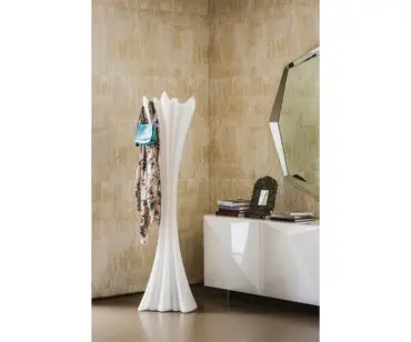 El diseño de la percha moderna Sipario se inspira en los drapeados de un tejido voluminoso. La delicada forma realizada de polietileno blanco logra otorgar movimiento y fluidez al material. Las superficies sinuosas y agraciadas de esta percha de diseño crean efectos claro-oscuros naturales y elegantes.Sipario satisface perfectamente las exigencias del uso al que está destinada: dado que puede utilizarse en ambos lados, cuenta con exactamente 8 puntos en los cuales colgar indumentaria.