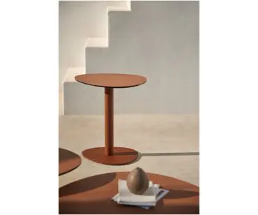 Mesa de pie central con tapa de porcelánico técnico laminado con cristal disponible en cuatro alturas diferentes (H33 / H40 / H55 / H66). Los precios de la mesa vráin según el acabado de tapa en porcelánico, el tamaño de la mesa.