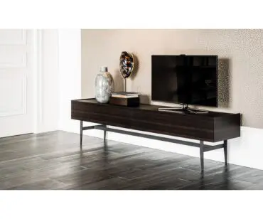 Horizon es un armario de diseño, pero también un mueble TV o una consola, dependiendo de la altura. Con puertas lisas de refinada madera natural y una base geométrica de acero, le confiere un aspecto distinguido y, al mismo tiempo, contemporáneo a la sala de estar. Este aparador moderno de madera se embellece aún más gracias a la encimera de cristal pintado y, en la versión alta, que puede utilizarse como consola moderna, presenta un práctico y elegante estante de madera a pocos centímetros de altura.