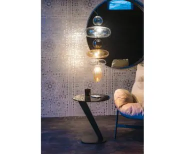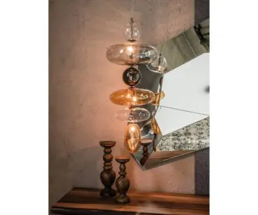 Lámpara Baban es una composición dinámica de delicadas pantallas de cristal transparentes, fumè y anaranjadas que, colgadas verticalmente, infunden armonía y elegancia a la habitación. Las pantallas de esta lámpara de techo moderna se realizan de diferentes formas y tamaños, para iluminar con gran originalidad un ambiente de diseño contemporáneo, de manera que resulte inigualable.