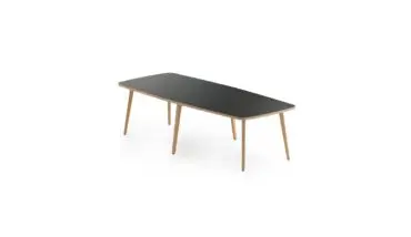 Mesa Timber, una mesa de mobiliario con un alto contenido de de naturalidad y armonía. La peculiaridad de esta mesa radica en su pata de madera de haya maciza que trasmite calidez y una sensación muy agradable gracias a este material noble.