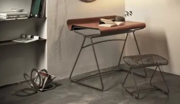 Escritorio Taylor de Bontempi, diseñado por Archirivolto. Espectacular escritorio con base en acero, sobre en cuero con pespunte en mismo tono o en contraste. Con una gran variedad de colores a elegir. Una pieza que resaltará el espacio donde lo ubiquemos dando un toque de elegancia al espacio seleccionado. La estructura la podemos elegir en blanco, arena, marrón oscuro, antracita o negro como acabados estándar, pero también en plata natural, oro o negro brillo. Medidas 97x68x75.