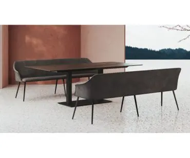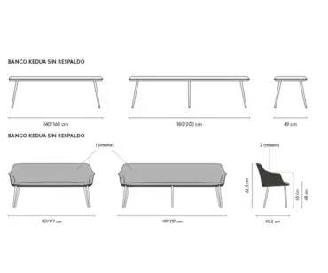 La familia de asientos Kedua diseñada por Santiago Sevillano aumenta con la incorporación de bancos con o sin respaldo. Cuatro medidas que van desde los 140 cm a los 200 cm de ancho y que se ofrecen con o sin respaldo. El usuario puede realizar muchas combinaciones en el tapizado ya que el asiento ofrece la posibilidad de tapizar con distintos tejidos las partes delantera y trasera. El respaldo está fabricado con espuma de poliuretano inyectada.