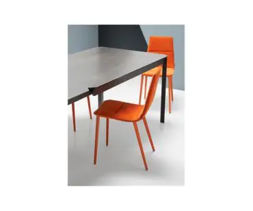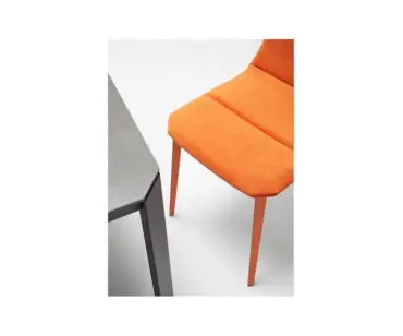 Silla Salt Mobliberica, silla de cocina o comedor realizada en estructura de acero con posibilidad de una amplia carta de colores y telas para que puedas personalizar desde el primer momento, detalles que marcaran un estilo y decoración en tu hogar. Su original diseño con forma triangular hace que visualmente estilice el espacio donde se encuentre y sus medidas reducidas te ayudarán a dar solución a espacios más pequeños.