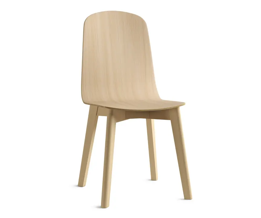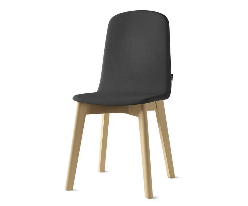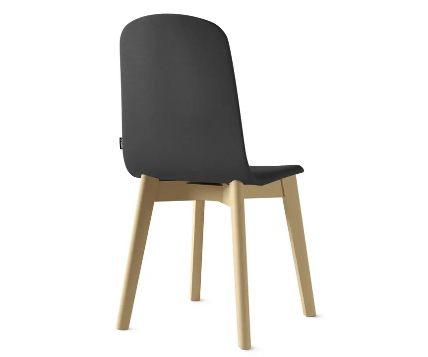 Silla Moly de cancio, una opción perfecta para cocina y contract con patas en madera maciza de haya teñida o lacada. Su carcasa en chapa de haya sobre contrachapado de 8mm de espesor, pudiendo ser en madera lacada, tessuto o tapizada en 27mm de espesor.