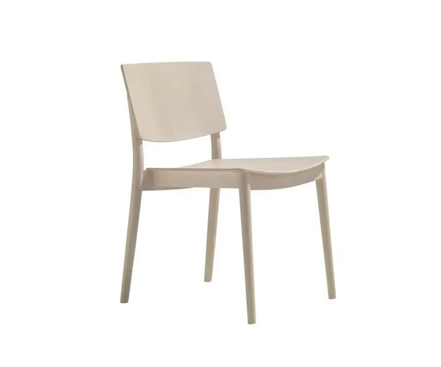 Silla Happy Andreu World, diseñada por Lievore Altherr Molina. Robustez y ligereza predominan en esta colección de sillas y sillones. Asiento y respaldo realizados en roble. En la versión con brazos, éstos se realizarán en maciza de haya al igual que su estructura. Apilables. Con opción de tapizado.