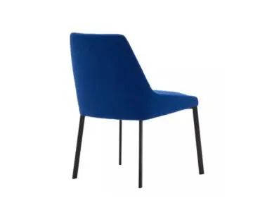 Sillón Alya de Andreu World, diseñado por Lievore Altherr, silla con asiento y respaldo tapizado y base de 4 patas de acero en acabado cromo brillo, blanco o negro.