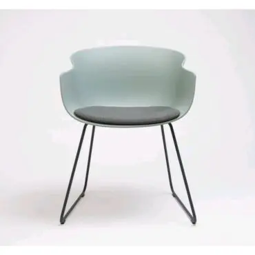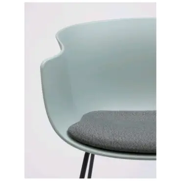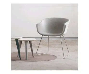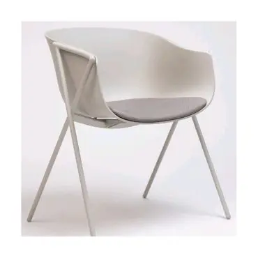 Estructura de acero pintado en epoxi, carcasa polipropileno o tapizado, o bien carcasa en polipropileno y asiento tapizado. Acabados a elegir. Una combinación de elementos clásicos y contemporáneos envuelve a la Familia Bai. Estructuras de acero en epoxi que sostienen una carcasa de formas suaves y orgánicas en polipropileno o tapizadas. Una familia que se amplía con versiones de patas trineo, entrecruzadas y de pie central.