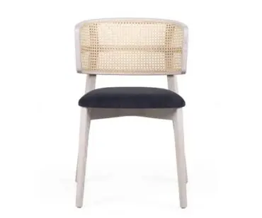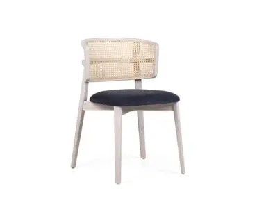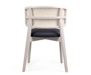 Silla comedor Coffe Wicker, una silla o sillón según se quiera usar, puesto que su respaldo ancho, permite poder apoyar los brazos. Llama la atención la originalidad de la rejilla en el respaldo, la estructura es madera de haya que permite una amplia variedad de acabados de color.