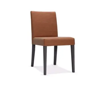 Silla de comedor Obi. Gran diseño y confort. Las líneas verticales le dan el carácter diferenciador de esta pieza. Disponible en un amplio abanico de tapicerías y barnices.