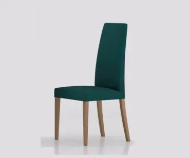 Silla comedor tapizada. Sus estilizadas líneas nos invitan a sentarnos y por tanto a disfrutar de su confort. Realizada en madera de haya, pudiéndose barnizar o lacar al gusto. Se ofrece en una amplia gama de tapicerías a elegir según nuestras necesidades.