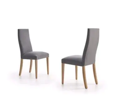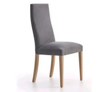 Silla comedor tapizada completamente. Sus estilizadas líneas nos invitan a sentarnos y por tanto a disfrutar de su confort. Realizada en madera de haya, pudiéndose barnizar o lacar al gusto. Se ofrece en una amplia gama de tapicerías a elegir según nuestras necesidades.