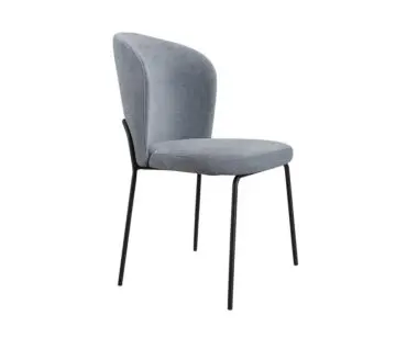 Silla para comedor con asiento y respaldo tapizado, respaldo curvado con patas de acero en color negro. Sus clásicas y estilizadas líneas nos invitan a sentarnos y por tanto a disfrutar de su confort. Se ofrece en una amplia gama de tapicerías a elegir según nuestras necesidades. Un estilo que vestirá tu comedor de elegancia.