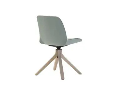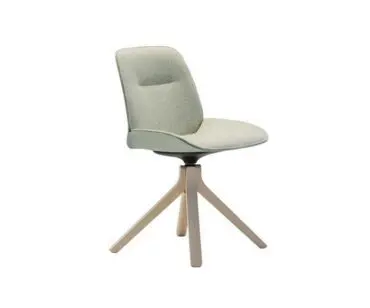 Silla Nuez de Andreu World, modelo SI 2789, una silla con carcasa de termopolímero disponible en varios colores y base central giratoria de 4 aspas de madera maciza de fresno con sistema de retorno. Opción de tapizar el asiento o todo el frente tapizado tal y como vemos en foto.