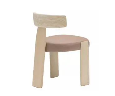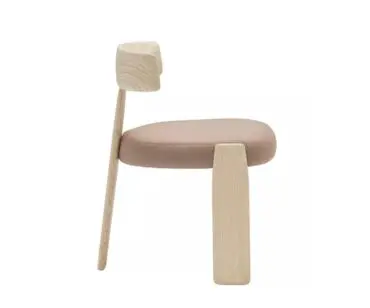 Sillón Oru Andreu World, diseñada por Patricia Urquiola, un sillón con asiento tapizado o asiento y respaldo tapizado y estructura de madera maciza de fresno.