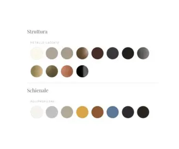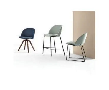Sus diferentes variantes son trineo, estructura de madera maciza o acero con base redonda de cuatro patas, enrejado o varilla, la carcasa tiene un respaldo de polipropileno y un asiento de madera o acolchado cubierto, con varias posibilidades de tapizados.