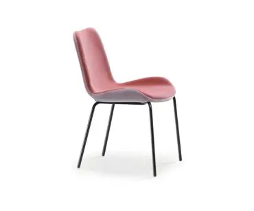 Silla con base en acero lacado o cromado. Carcasa tapizada en cuero, ecopiel y tela.