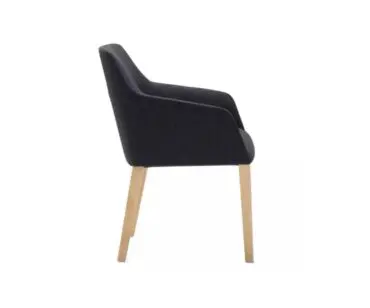 Sillón Alya de Andreu World, diseñado por Lievore Altherr, con asiento y respaldo tapizado y base de 4 patas de madera maciza de haya. Un sillón con carácter y personalidad.