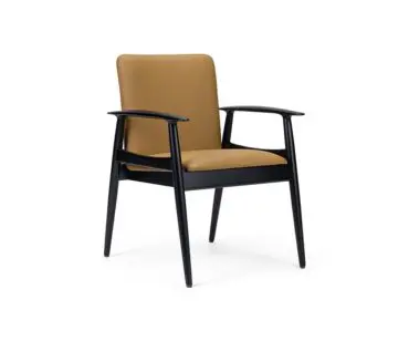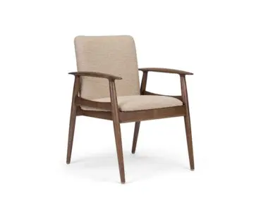 Sillón de comedor Sandal. Gran diseño y confort. Las líneas verticales le dan el carácter diferenciador de esta pieza, el brazo en madera muy limpio y de línea muy suave, lo que hace que sea elegante. Disponible en un amplio abanico de tapicerías y barnices, para que puedas adaptarle a tus gustos y necesidades.