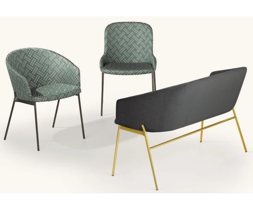 Sillón con estructura de acero, muy cómoda gracias al tapizado en el asiento y respaldo. Las patas de acero están disponibles en un amplio abanico colores. Para la tapicería hay varias opciones con diferentes colores y texturas, con o sin arrugas, para darle un toque más vintahe. Dsifruta de una amplia variedad de combinaciones sillas, sillones y sofás. Un modelo muy original, diferente por sus líneas redondeadas de las patas vistas por el exterior.