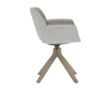 Las patas son de madera de fresno macizo y puedes optar entre una amplia gama de acabados, sus patas a la vez son giratorias con un sistema de retorno, es decir que al levantarnos el sillón siempre vuelve a su posición.