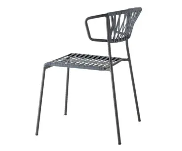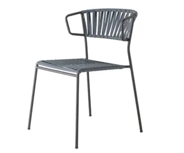 Butaca Lisa Club, con aire fresco, de asiento y respaldo en hilos de PVC para que sea práctica, ligera de mover y apilable, que nos recuerda a los jardines de nuestro pasado.