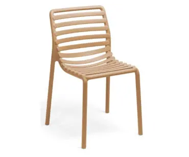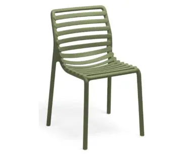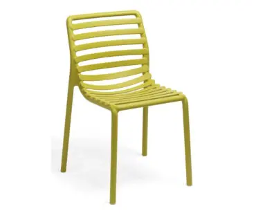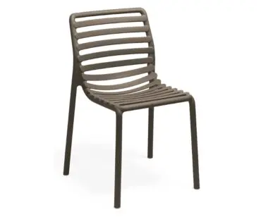 La silla Doga es una reinterpretación contemporánea de la lama en Doga Bistrot, un asiento de exterior sin reposabrazos de resina reforzada con fibra de vidrio. Es manejable, apilable, fácil de limpiar y completamente reciclable.