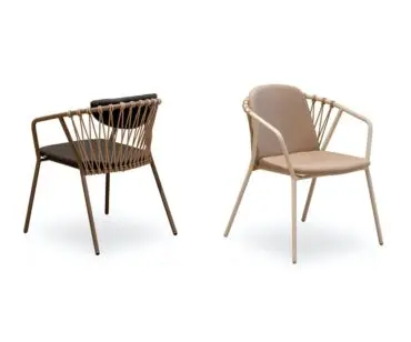 Silla Baga de Musola fabricada completamente en acero inoxidable, su asiento de una o dos piezas, es extraible y desenfundable, con el interior de espuma de poliuretano hodrófuga y fibra de poliéster. El respaldo es de cuerda de poliéster disponible en varios colores. Además permite el apilado de hasta 4 sillas.