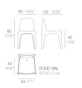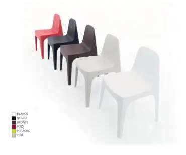 Silla Solid Vondom, diseño Stefano Giovannoni & Elisa Gargan, Fabricada en poliporopileno por inyección con carga mineral. Apilable. Disponible en varios colores. Apto para uso interior y exterior. Una familia de productos que a pesar de ser ligeros, aportan estabilidad, a través de sus cortes y geometrías bien definidas, como si se tratara de piedra esculpida. La colección esta formada por un sofá, butaca, silla, silla con reposa brazos, mesa y mesa baja. Una colección funcional gracias a su apiliabilidad y diseño.
