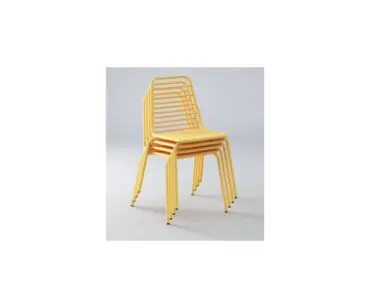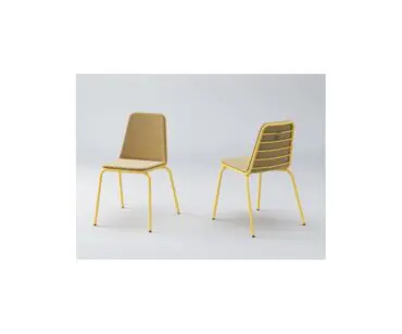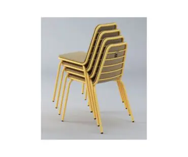 Silla Sorell de Musola, fabricada completamente en acero inoxidable. La tapicería es extraible y desenfundable. El interior de asiento y respaldo es de espuma de poliuretano hidrófuga. Permite el apilado de hasta 6 sillas.