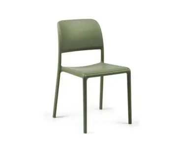 Silla para terraza Riva Bistrot. Realizada en polipropileno con tratamiento especial para rayos ultravioletas que hará que no pierda el color con la exposición al sol. Patas en aluminio pintado con tacos antideslizantes. Apilable. Efecto mate. Disponible la versión con brazos.
