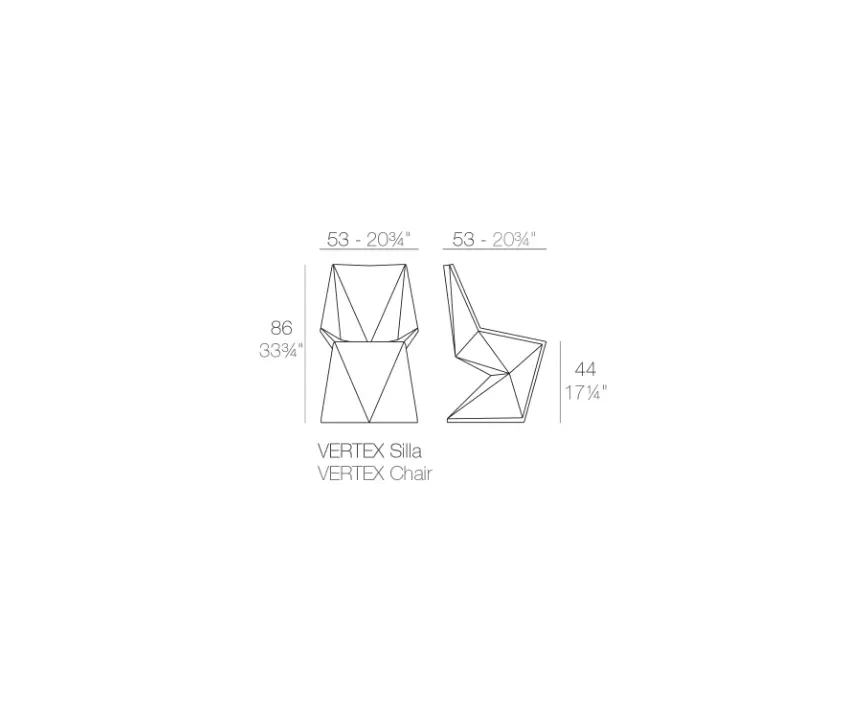Silla Vertex Vondom, diseño Karim Rashid. Fabricada con resina de polietileno mediante moldeo rotacional con doble pared. 100% Reciclable. Apto para exterior e interior. Disponible en varios acabados. La colección VERTEX ha sido creada para integrar en nuestro espacio una pieza arquitectónica más conceptual, aportando de este modo un toque más sofisticado.
