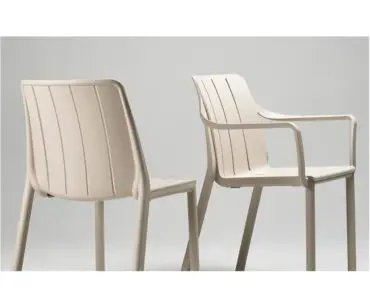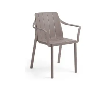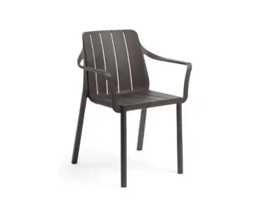 El sillón Tiberina, con patas circulares con respaldo en lamas y sin brazos, es un modelo perfecto para cualquier terraza, sus medidas recogidas y la posibilidad de ser apilable la hacen ideal. A demás es sorprendente su comodidad para ser un sillón en polipropileno reforrzado con fibra de vidrio.
