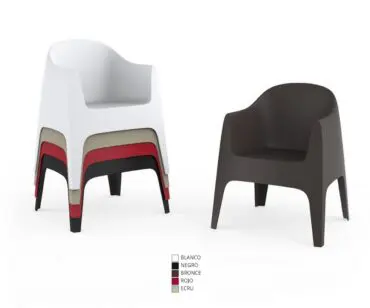 Sillón Solid Vondom, diseño Stefano Giovannoni & Elisa Gargan, Fabricada en poliporopileno por inyección con carga mineral. Apilable. Disponible en varios colores. Apto para uso interior y exterior. Una familia de productos que a pesar de ser ligeros, aportan estabilidad, a través de sus cortes y geometrías bien definidas, como si se tratara de piedra esculpida. La colección está formada por un sofá, butaca, silla, silla con reposa brazos, mesa y mesa baja. Una colección funcional gracias a su apiliabilidad y diseño.