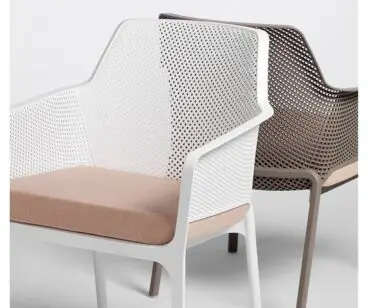 Sillón para terraza o jardín Net Relax de gran comodidad y resistencia. Realizado en polipropileno y reforzado con fibra de vidrio con tratamiento especial para rayos ultravioletas que hará que no pierda el color con la exposición al sol. Tacos antideslizantes, acabado mate y apilable. Disponible cojín para el asiento para mayor comodidad .