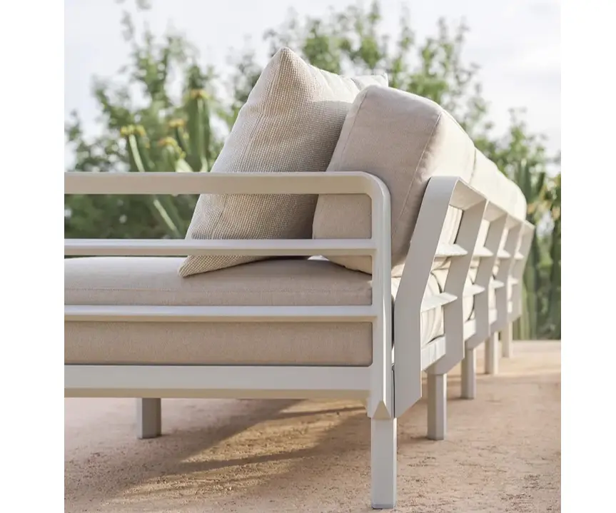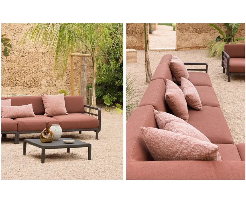 Resistencia al agua: Los cojines son desenfundables y cuentan con un tratamiento hidrorrepelente. Además, tienen un sistema diseñado para dispersar la humedad y evitar el estancamiento de agua.